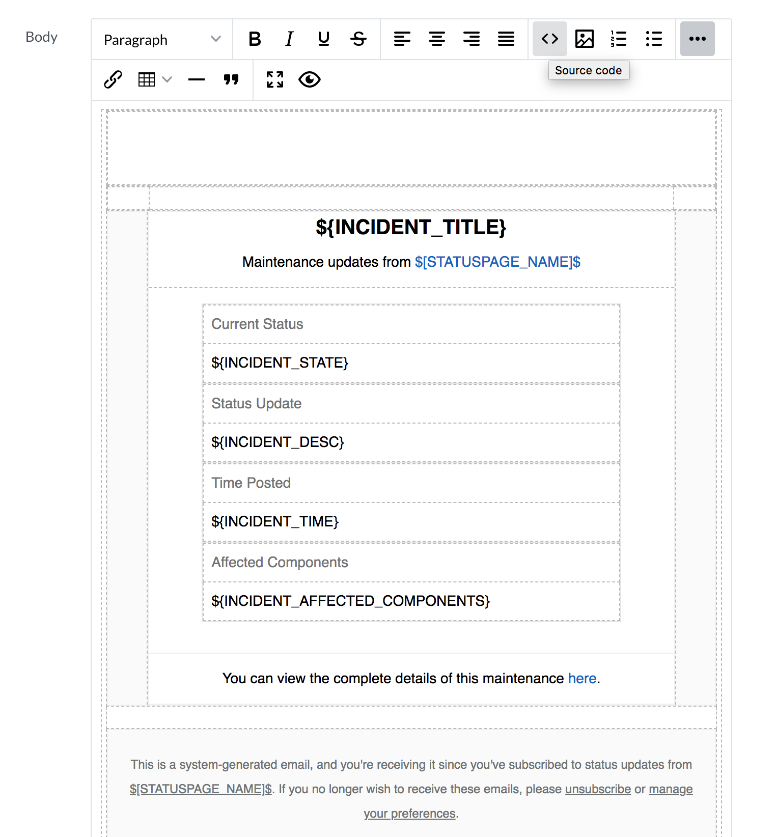 StatusIQ allows you to customize emails sent to your subscribers. This feature is available only for users with a Green status page subscription.