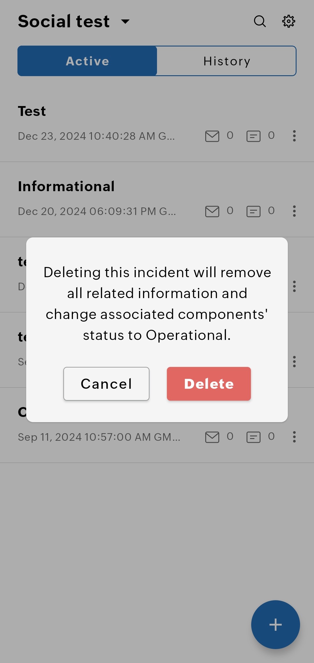 icon on the bottom-right corner to create a new incident. - Select Active if it is a current incident or Historic if it is a past incident.
