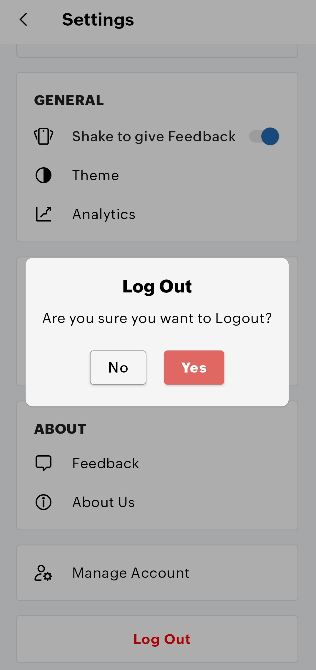 icon at the top-right corner. - Scroll down to the bottom of the page and click the Log Out. You will get the following confirmation pop-up: