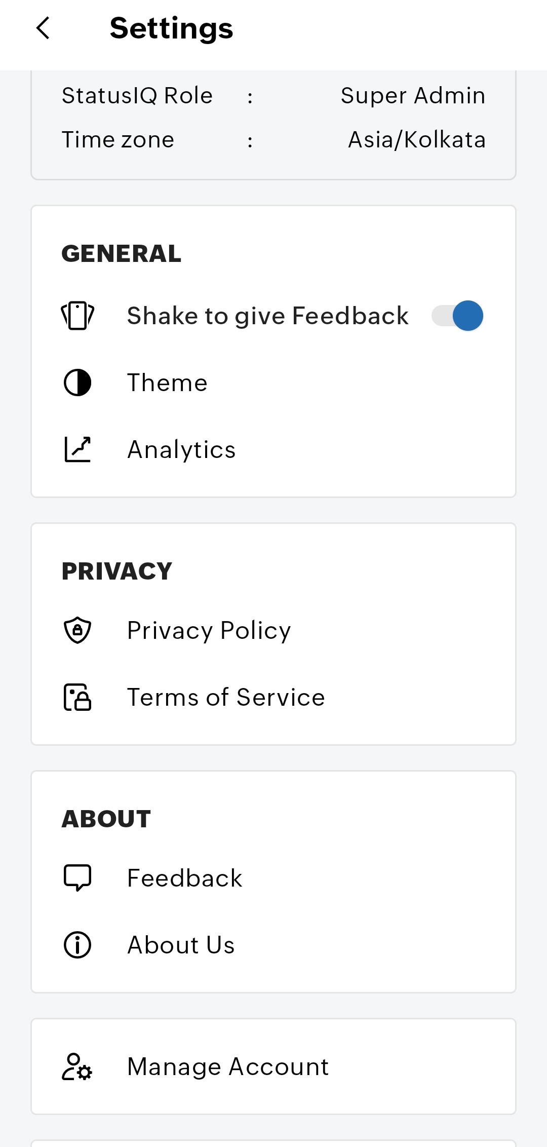 - Terms of Service: Informs users about the rules for using the StatusIQ mobile app.