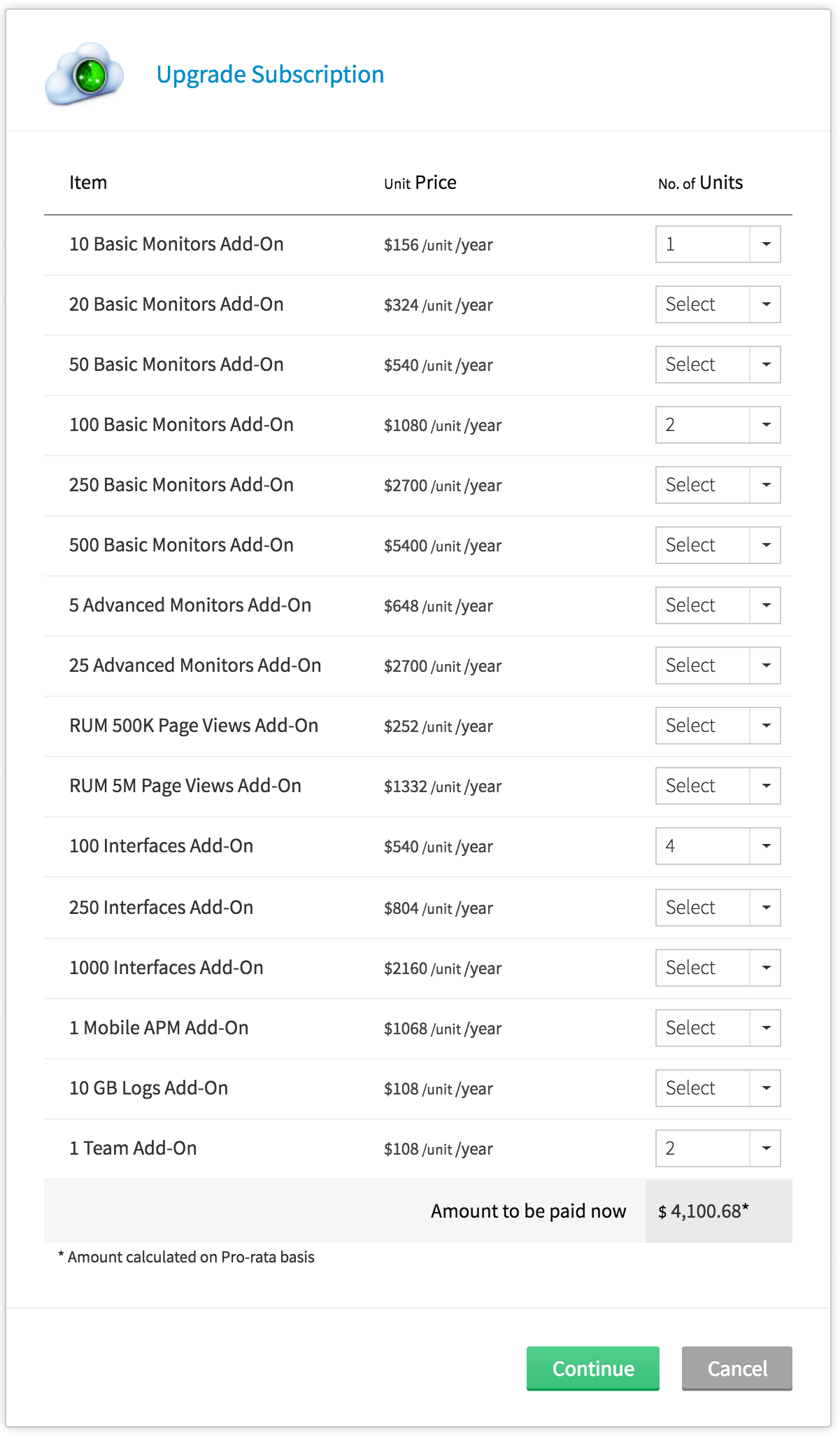NoteThe charges for your subscription will be calculated based on pro-rata basis.